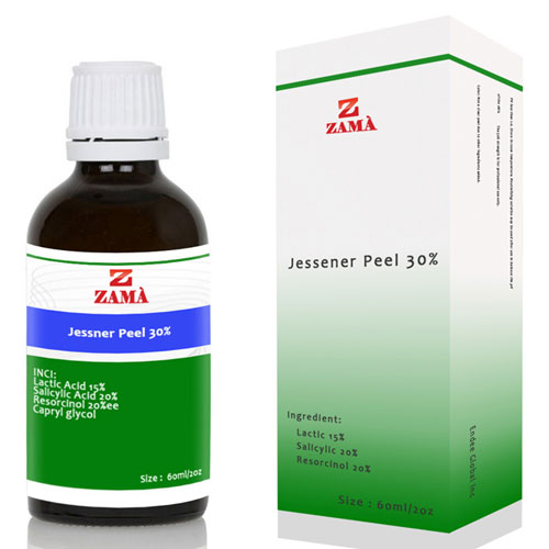 Jessner peel 30% contains: Lactic 15%, Salicylic 20%, Resorcinol 20%. The 50% is for professional use only.   The solution is applied by gently coating the skin with multiple layers of the peel.The benefit of Jessner is in its ability to treat acne and acne scars while resurfacing the skin. Fortified with kojic acid and bearberry extract. Jessner's can be used to lighten areas of hyperpigmentation, treat acne and acne scars and to treat photo damaged and aged sun damaged skin.